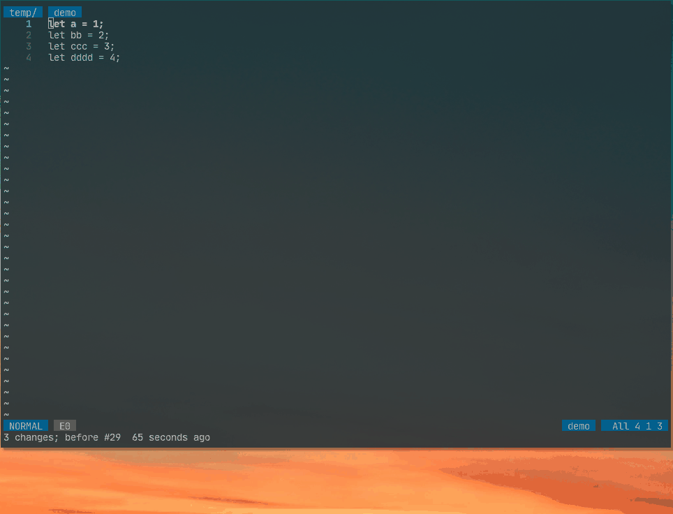 1 | 当前有以下文本,试完成以下案例 原始光标初始位置在第1行的l位置 |